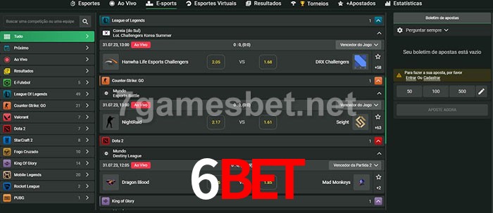 O 6Bet oferece uma grande seleção de opções de apostas em e-sports com probabilidades competitivas